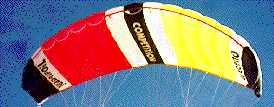 Sky Tiger has a Hi-60, a Hi-40 and now two new models a Hi-100 and a Hi-30. I own a Hi-60 (see the previous page) and have buggied with a Hi-40. The Hi-40 is a very nice high performance buggy engine, maybe as large as you need if you are very light weight and a good intermediate size if you are heavier. I have briefly flown the Hi-100 in very light wind but never buggied with it. My feeling is that it is a specialty kite to be used with caution if you are reasonably sure the winds will remain steady. It has very high gust sensitivity and can very quickly overpower the flier. The same is true of the Hi-60 but to a much lesser extent. Click hereto see a picture of the Hi-100. The Hi-30 seems to be similar to the Hi-40 but smaller in size. I have never flown one so I cannot give accurate advice, but it should perform like the other Hi aspect Sky Tigers.