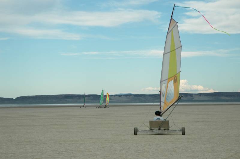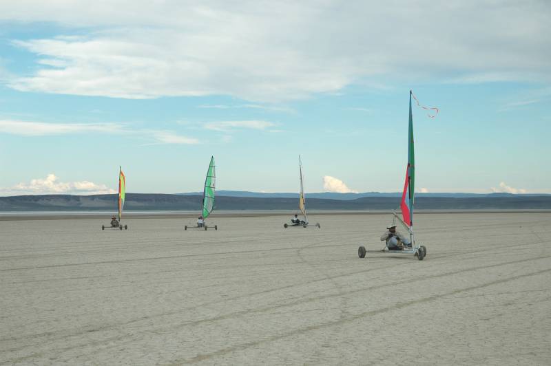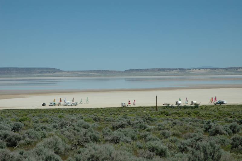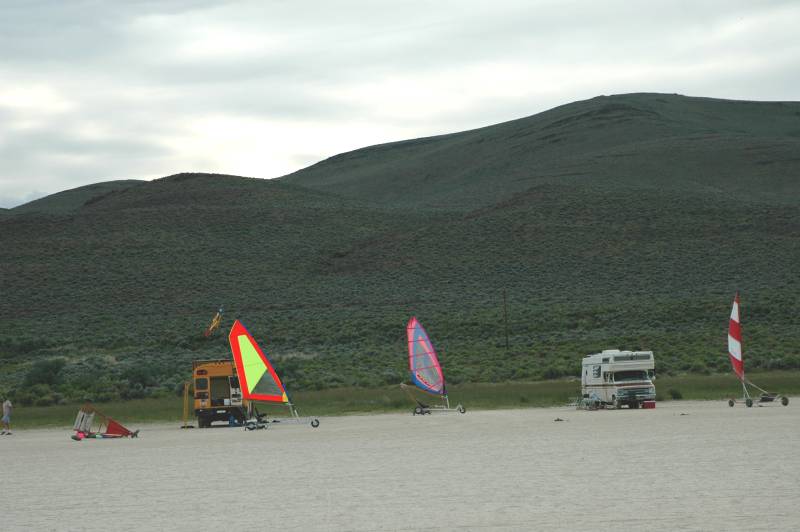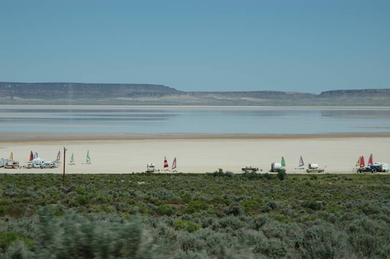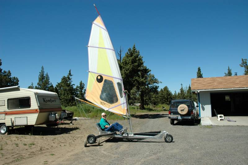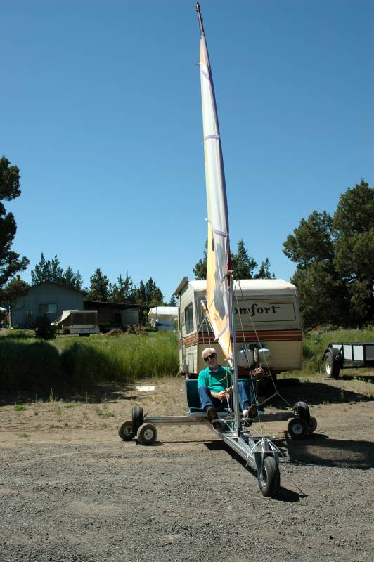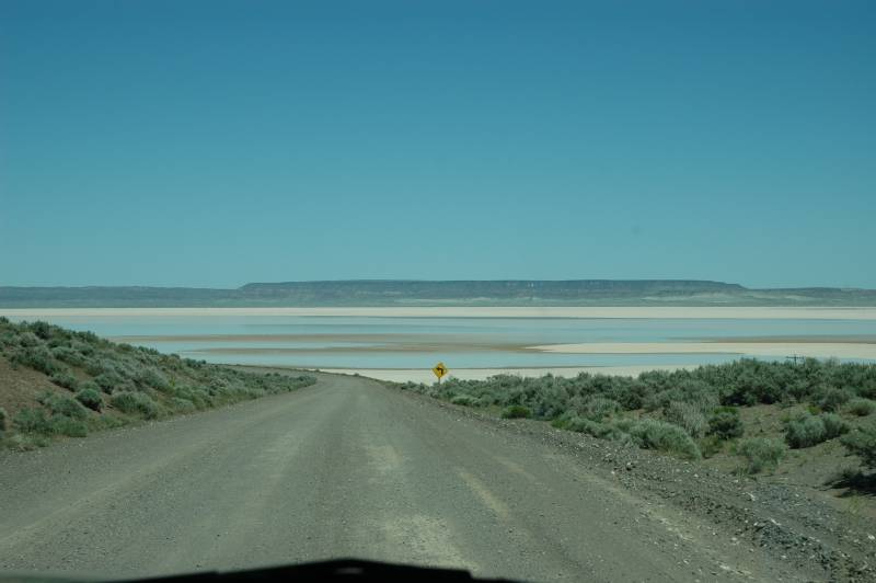 We pickup our new (to us) land yacht at Rich Crnich's place in Bend, Or. We get our first view of the water level on the "dry lake". Morrie gets to test drive our new land yacht. The (Dave) Lord Boys - Jamie, Dana, Scott & Kim