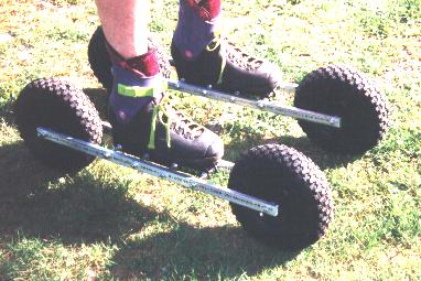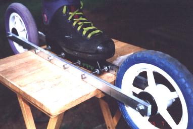 Click Here for a close up of of the skates. Click Here to see a detailed picture of the skinny wheel version. And Click Here to see details of the side rail attachment and roller blade boot offset.
